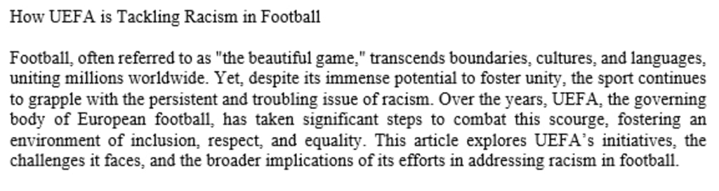 Football, often referred to as "the beautiful game," transcends boundaries, cultures, and languages, uniting millions worldwide. Yet, despite its immense potential to foster unity, the sport continues to grapple with the persistent and troubling issue of racism. Over the years, UEFA, the governing body of European football, has taken significant steps to combat this scourge, fostering an environment of inclusion, respect, and equality. This article explores UEFA’s initiatives, the challenges it faces, and the broader implications of its efforts in addressing racism in football.