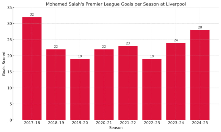 Mohamed Salah’s Premier League goals per season at Liverpool