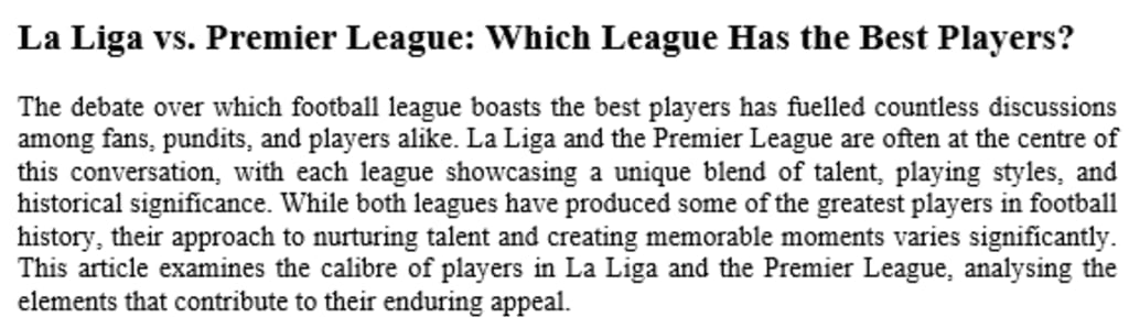 Determining which league has the best players ultimately depends on individual preferences and what fans value most in football. La Liga’s emphasis on technical brilliance and its legacy of producing legendary players make it a purist’s dream, while the Premier League’s intensity, diversity, and global appeal cater to a broader audience.