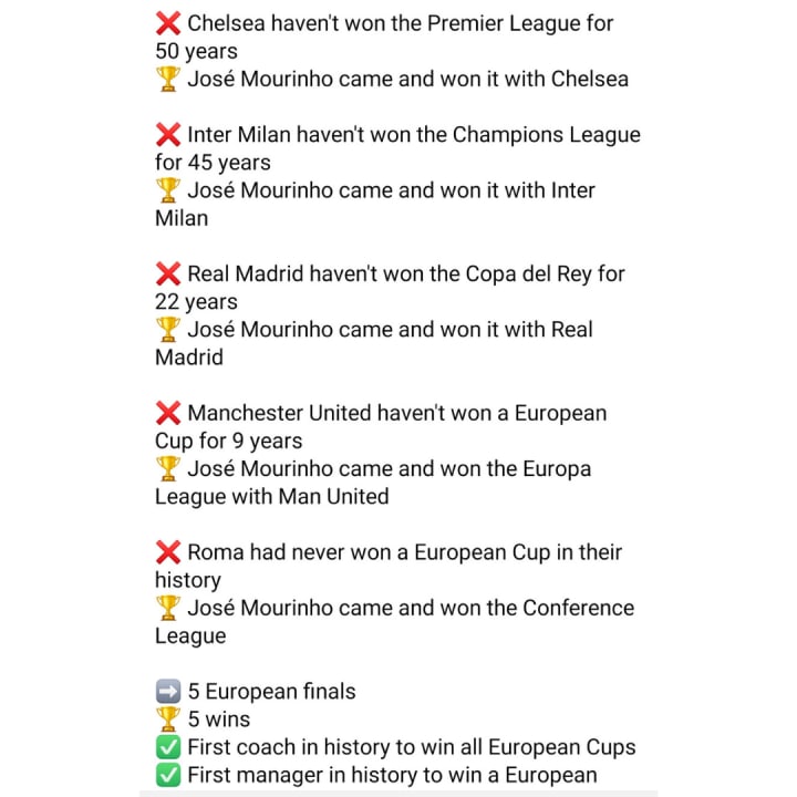 In conclusion, José is back. He is back at his finest. Winning a Conference League with A. S. Roma is just the first step in proving a lot of football people wrong and proving he still is among the best in his profession. Will he ever be given another chance at the top? We’ll see. Until then, I hardly think he will ever have to post his CV on Instagram to get a job. His team may not be the most eye-catching to watch, but he is and will be there to bring things that count the most. Trophies. Because in 10 years, fans won’t remember how his team played. Just what they achieved together.
