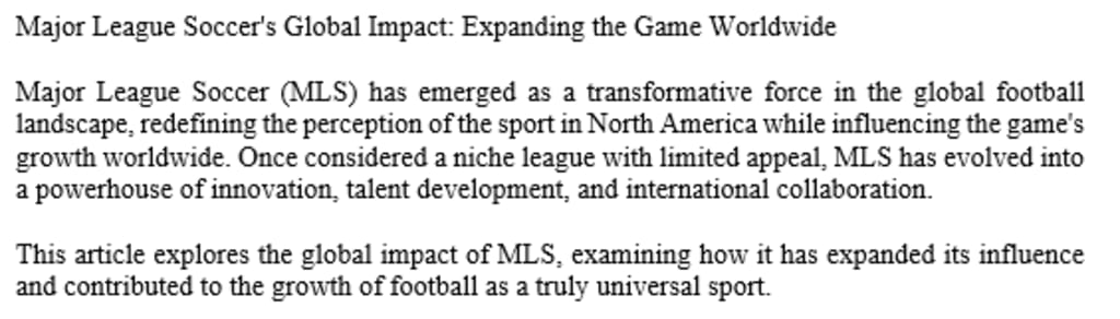 Major League Soccer's Global Impact: Expanding the Game Worldwide