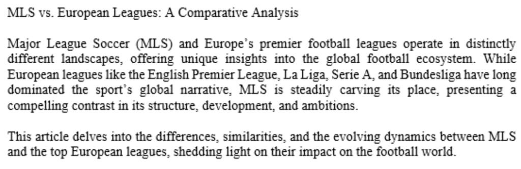 This article delves into the differences, similarities, and the evolving dynamics between MLS and the top European leagues, shedding light on their impact on the football world.