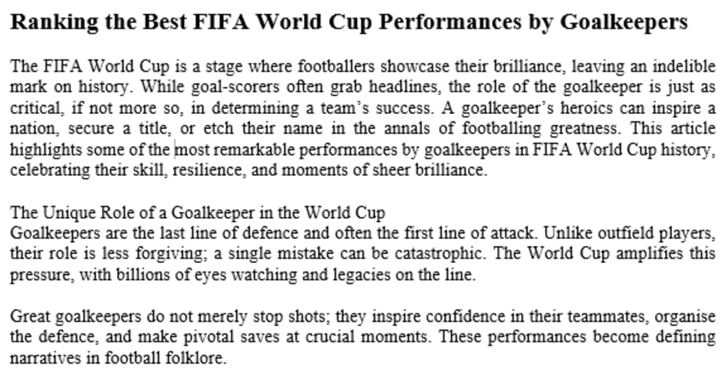 The Unique Role of a Goalkeeper in the World Cup