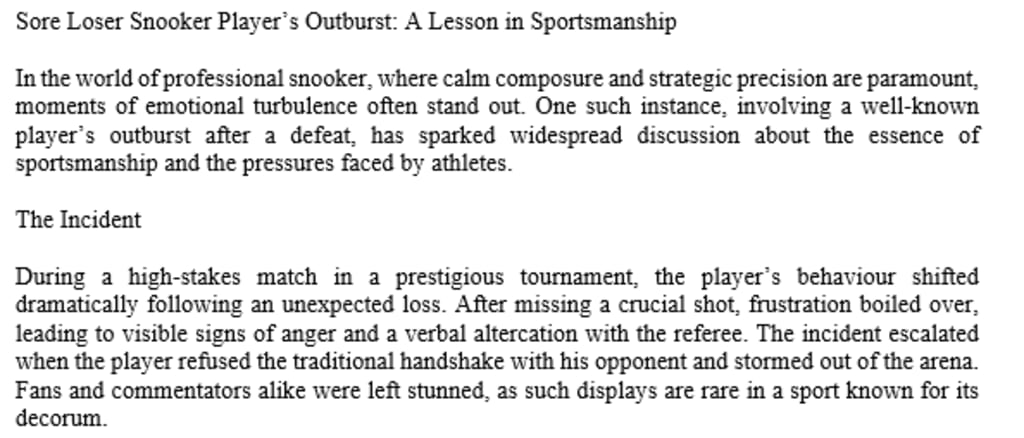 Sore Loser Snooker Player’s Outburst: A Lesson in Sportsmanship
