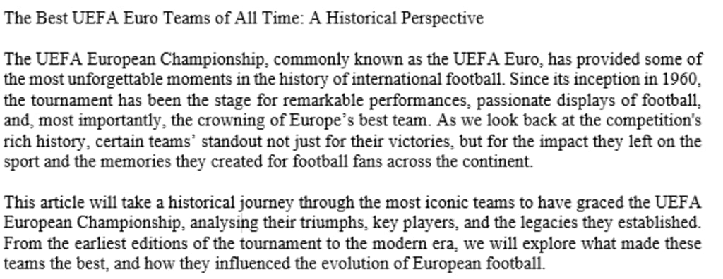 The UEFA European Championship, commonly known as the UEFA Euro, has provided some of the most unforgettable moments in the history of international football. Since its inception in 1960, the tournament has been the stage for remarkable performances, passionate displays of football, and, most importantly, the crowning of Europe’s best team. As we look back at the competition's rich history, certain teams’ standout not just for their victories, but for the impact they left on the sport and the memories they created for football fans across the continent.