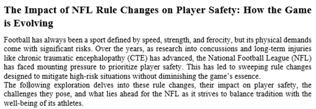 These rule changes symbolize a league willing to evolve for its athletes' sake. They show that tradition need not mean stubbornness and that the essence of football lies not in its hardest hits but in the courage, skill, and resilience of those who play.
