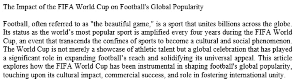 The Impact of the FIFA World Cup on Football's Global Popularity