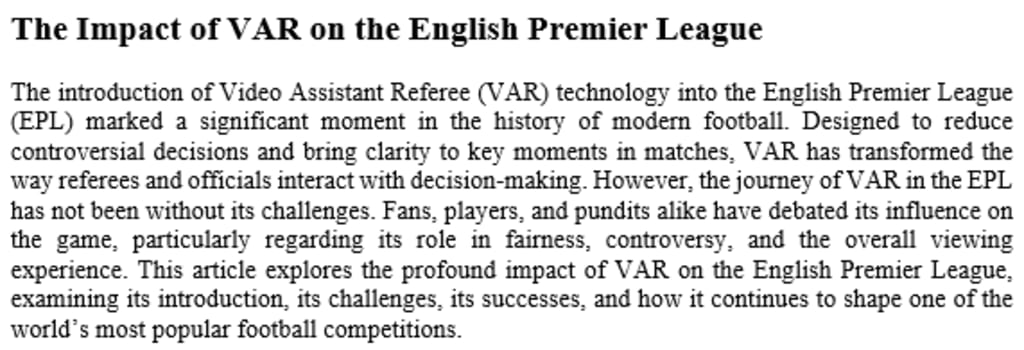 VAR represents a marriage of tradition and modern technology. While it can be used to correct clear errors, it must continue to evolve in a way that preserves the unpredictability, excitement, and raw emotion that have defined the Premier League for decades. As the EPL moves forward, it will undoubtedly continue refining how VAR is implemented, learning from its successes and setbacks, and striving to maintain the integrity and spirit of the beautiful game.
