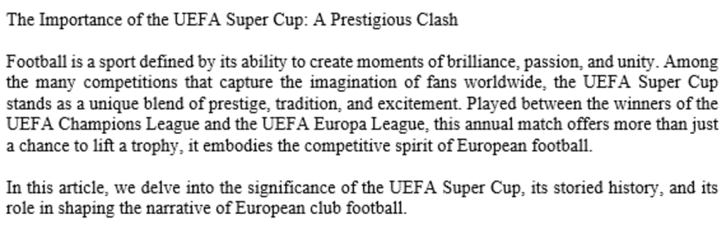 The Importance of the UEFA Super Cup: A Prestigious Clash