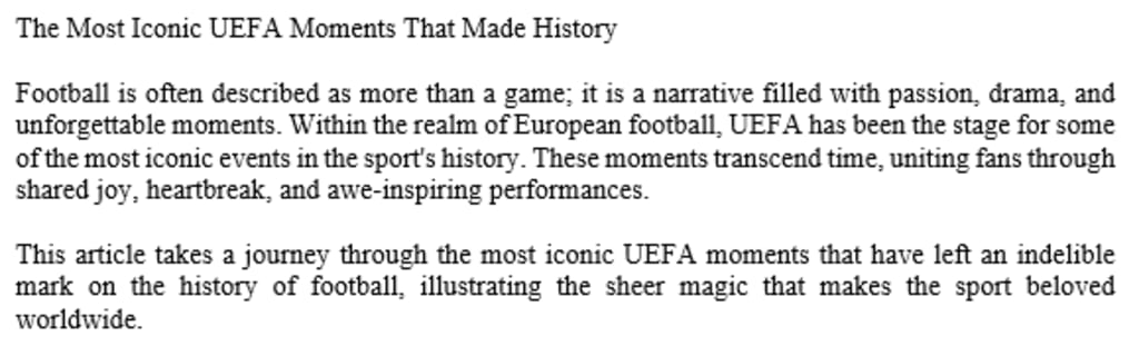From stunning goals to fairytale victories, UEFA moments remind us why football is called "the beautiful game." These stories are timeless, inspiring players and fans alike to dream big and believe in the extraordinary. As football continues to evolve, one thing remains certain, UEFA will always be at the heart of the sport's most unforgettable moments.