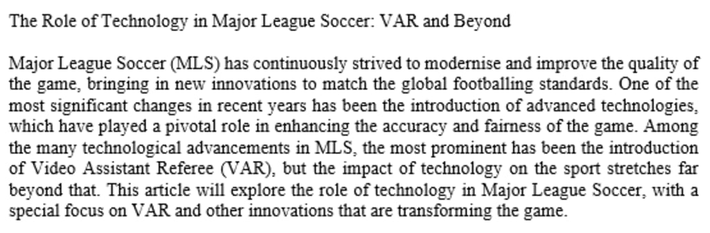 The Role of Technology in Major League Soccer: VAR and Beyond