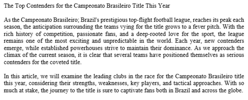As the Campeonato Brasileiro; Brazil's prestigious top-flight football league, reaches its peak each season, the anticipation surrounding the teams vying for the title grows to a fever pitch. With the rich history of competition, passionate fans, and a deep-rooted love for the sport, the league remains one of the most exciting and unpredictable in the world. Each year, new contenders emerge, while established powerhouses strive to maintain their dominance. As we approach the climax of the current season, it is clear that several teams have positioned themselves as serious contenders for the coveted title.