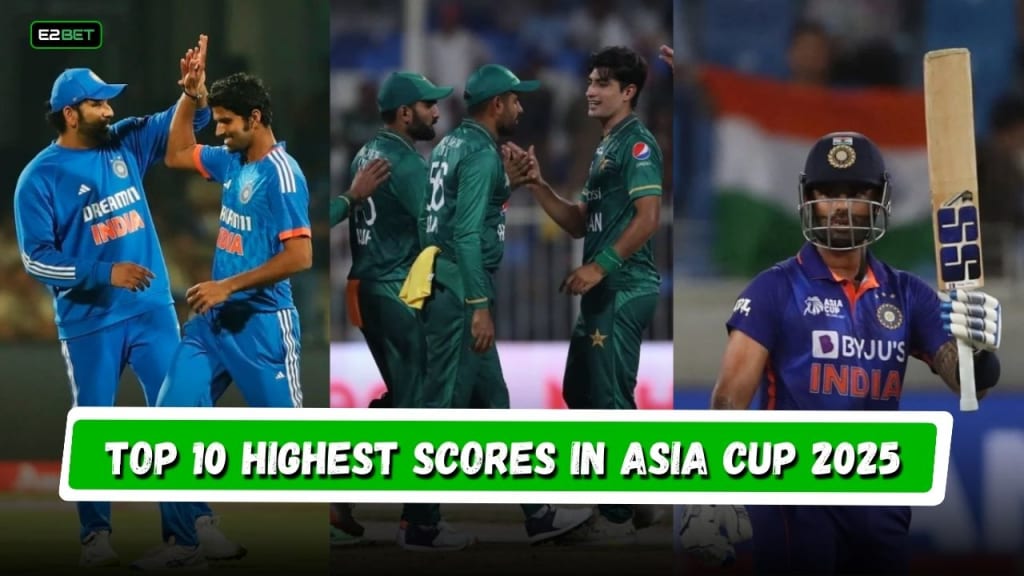 India holds the record for the Highest Scores in Asia Cup 2025, scoring 212 for 2 against Afghanistan in Dubai, 2022. Virat Kohli starred with an unbeaten 122 runs, marking his first T20I century, while Suryakumar Yadav contributed 57 runs. Bhuvneshwar Kumar took five wickets to help India win by 101 runs. This match is remembered as one of the most remarkable batting performances in Asia Cup history.