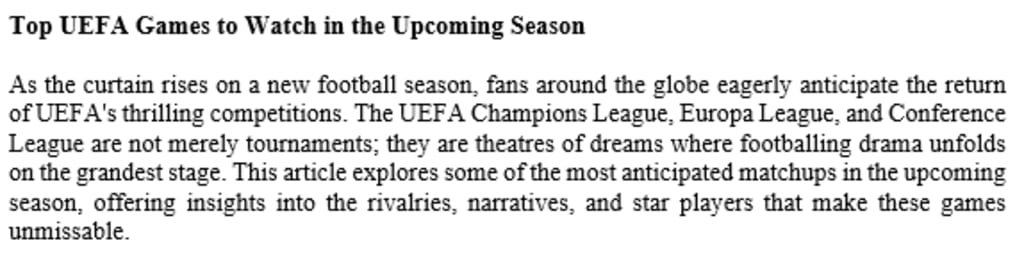 Top UEFA Games to Watch in the Upcoming Season