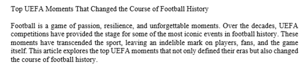 Football is a game of passion, resilience, and unforgettable moments. Over the decades, UEFA competitions have provided the stage for some of the most iconic events in football history. These moments have transcended the sport, leaving an indelible mark on players, fans, and the game itself. This article explores the top UEFA moments that not only defined their eras but also changed the course of football history.