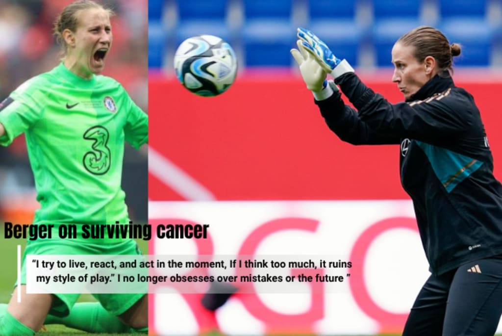 Berger explains how surviving cancer changed her entire outlook on life and football. “I try to live, react, and act in the moment,” says Berger. “If I think too much, it ruins my style of play.” She no longer obsesses over mistakes or the future — her perspective is grounded in the now, thanks to her experiences with serious illness.
