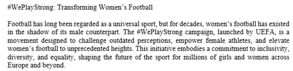 #WePlayStrong: Transforming Women’s Football