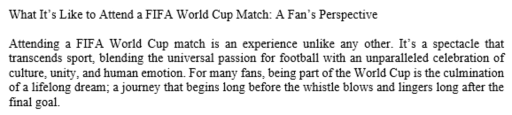 What It’s Like to Attend a FIFA World Cup Match: A Fan’s Perspective