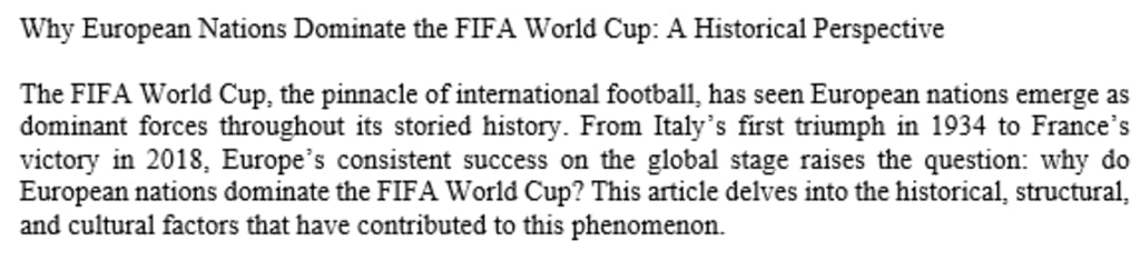 Why European Nations Dominate the FIFA World Cup: A Historical Perspective