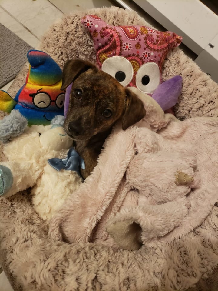 Yes, my dog is part Pit-Bull, part Chihuahua. She is a bit bigger than a normal-sized Chihuahua, and she has Brindle colors. Thankfully she's not too much of a yapper.