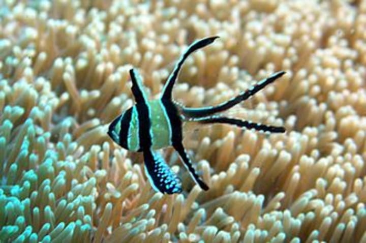 1. *Popular aquarium fish*: The Banggai Cardinalfish is a popular species among aquarium