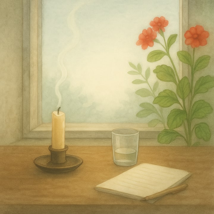 Night seeps quietly through the window.