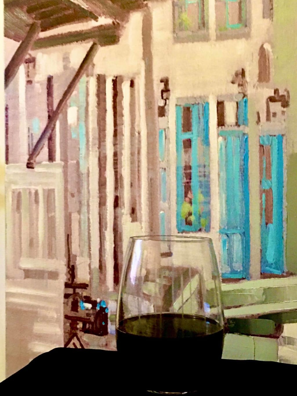 She takes a sip from the glass of Merlot that is now mysteriously in her hand.