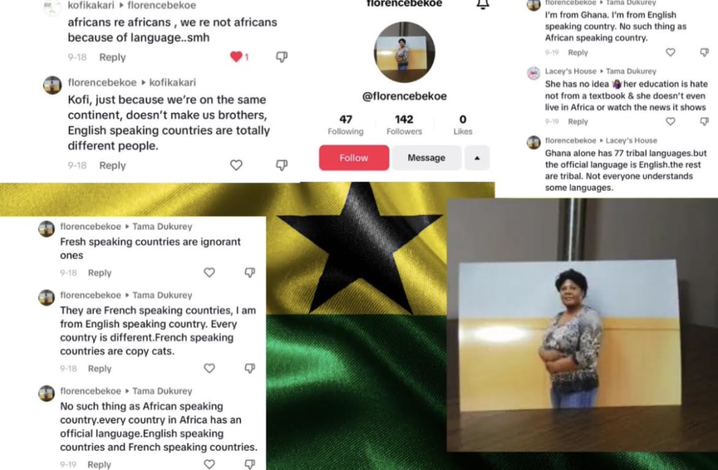 Her hate speech was simply directed at all French speaking African countries, she being from Ghana most not relize that most countries in West Africa are French speaking countries. Many Africans tried to correct her and they said they're Africans, not French people.