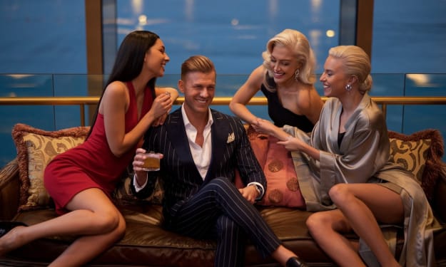 As she approached, the man lowered the paper, revealing a sharp, handsome face. He was in his late thirties, with piercing blue eyes and a confident smirk. He gestured for her to sit.