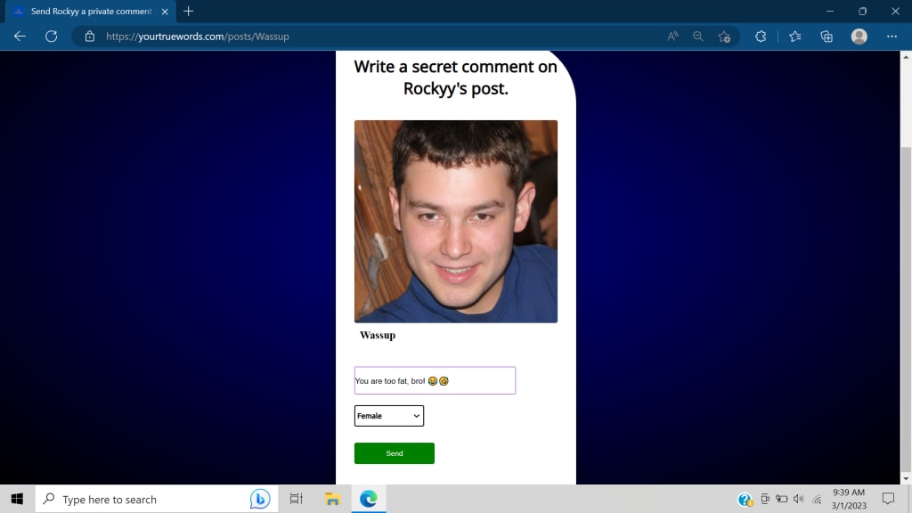 Step1. Visit this website send and receive secret messages | Confessout (https://yourtruewords.com/)
