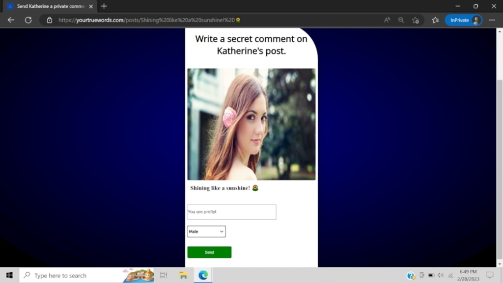 Step1. Visit this website send and receive secret messages | Confessout (https://yourtruewords.com/)