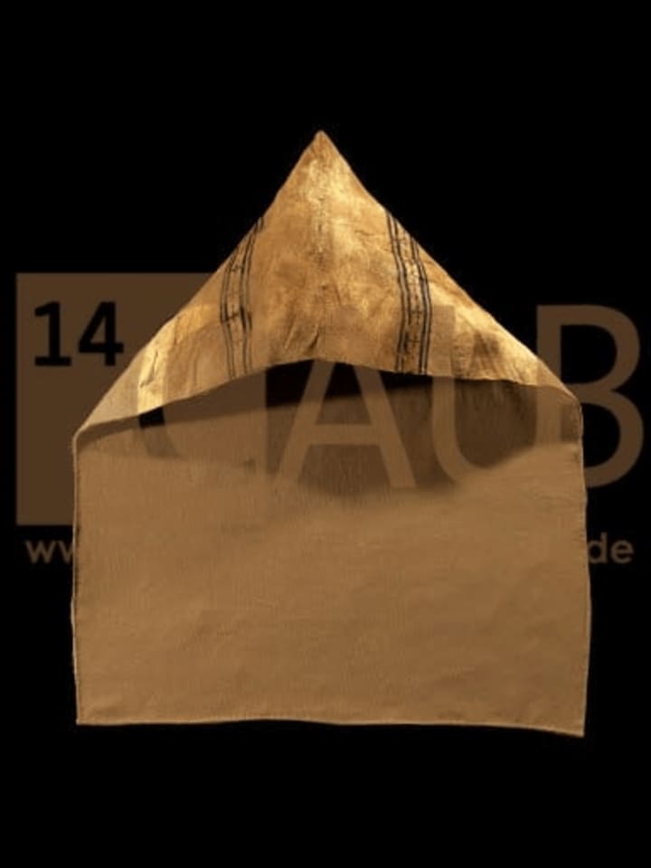 The oldest surviving koukoulion, found in an Egyptian monastic burial site, which is presumably from the 7th century and now it is in the Louvre Museum collection. the oldest image of a koukoulion is in the Syrian Rabula Codex (c. 586). In both cases, the koukoulion is a cape made of a small piece of fabric with a sharp top.