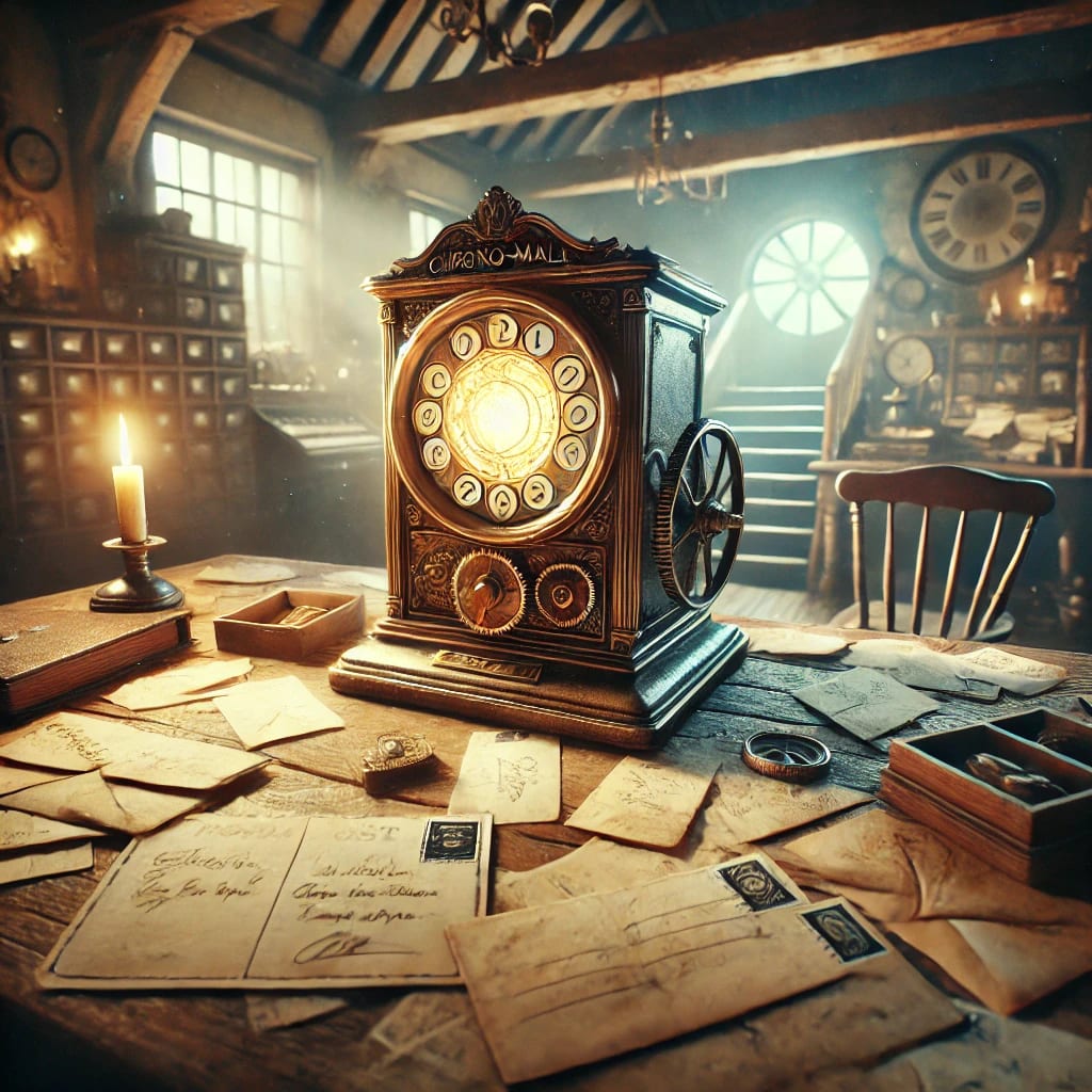 Long ago, a brilliant inventor named Evelyn had created a device that allowed messages to transcend the boundaries of time and space. She was driven by a singular desire: to reconnect with the love of her life, a man named Alaric, whom she had lost in an accident years earlier. The tragedy had shattered her heart, but Evelyn was determined not to be bound by the limits of mortality. Using her vast knowledge, she crafted a machine, a simple-looking box with intricate gears and a glowing crystal at its heart. She called it the "Chrono-Mailer."
