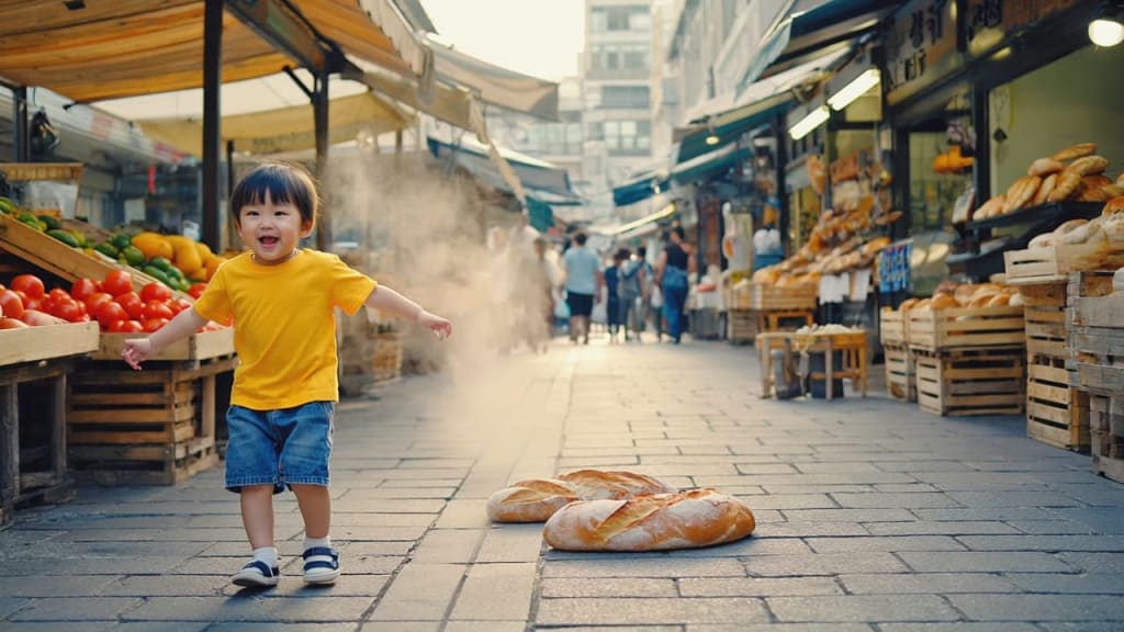 Panicked, I retraced my steps. I found the cheese rolling beneath a churro cart, the basil flattened like roadkill by a toddler’s tricycle, and the loaf of bread—well, the bread was gone.