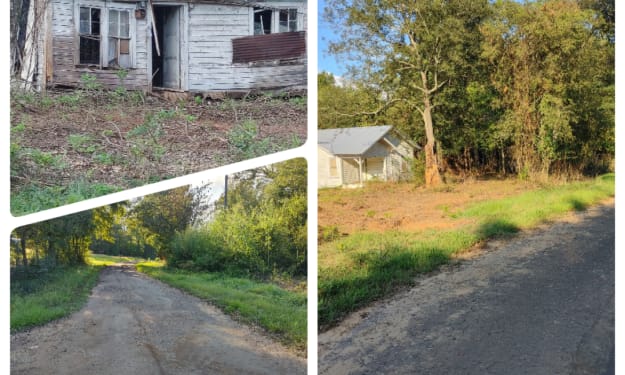 The joke was on us and at the time we didn't realize it growing up in what the world calls the boondocks ,out in the country where there's miles and miles and miles of nothing but trees surrounding you and few neighbors to call upon and being so deep in the woods that at night the trees had their own character come to life or at that time being kids with wild imaginations put that thought in our minds. As I recollect these memories living down in the boondocks had it's good moments and it's scary moments . Having 3 plus myself siblings in our home my parents found ways to keep smiles and happy times in our childhood . having two older sisters and a baby brother yes it was definitely full of surprises in our home. The second oldest sister and I were the closest because with two of our cousins we are all four in the close age range where we enjoyed being with each other . the four of us were each others childhood best friends. Where you seen one you seen the other three not too far away . That is where this story shall begin . our dads are brothers and they grew up in this place called Jumbo which I call the boondocks . generational property passed down for many many years back when the Indians had claims to this land , Our dads Great aunt which was known as a spinster lived in a one bedroom home which today still stands , that was built by her parents family for them to live in as she was a child , well if I remember correctly because she never had kids of her own she really didn't take too well with kids and preferred to be left alone , the story that has stuck with us today that we were told as kids was she passed away in her home and if you listen closely you can hear her footsteps as she walks up and down the oil top road in which we loved to play on. Maybe this is why our dads told us this to see if we would still stay out playing during the summer nights or if we would be too scared to. If you don't think this is scary imagine being 10 years old and love playing outside all hours of the night . I guess my dad and uncle had a lot of laughs back then because the four of us would grab flashlights and walk and every time we walked past the little abandoned home one of us would say something and we would all take off running as if we heard her footsteps and it seemed every time one of us would be left behind as the other three teamed up and ran as fast as they could, I remember one time I thought I was going to pee my pants trying to keep up and not be left behind because being scared in my mind I really thought the footsteps were close and real and I couldn't run fast enough.. The crazy silly things we do when we are young but to make matters worse we would all end up in our cousins bedroom and an imagination can really stir up a child's mind . the street light that was outside my cousins bedroom window would dazzle in with this extra shadow that displayed across the center of their bedroom floor in the shape of what looked like the devils fork . after running from the footsteps we would be whispering and shaking all of us scared not wanting to go to sleep but we all knew we better not wake anyone else up. That same episode happened more so than not in those days as if being scared became a game amongst the four of us . as I look back at those days I now know why I don't like scary movies.we had our own scary movie we played in during those days. my sister and I talk about our child hood quiet a bit and we just laugh about the footsteps we thought we heard because the Joke was played on us . If you look at the picture that is the one bedroom home that still stands at this time and the black oil top road that we would keep busy with our feet.
