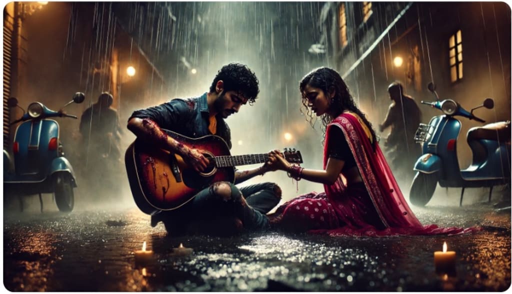 One rainy evening, while Raheel played his guitar beneath a flickering streetlamp, fate brought him face to face with Maya. Adorned in a striking crimson saree, her eyes sparkled like stars in the dark sky. As the daughter of a wealthy business magnate, Maya had escaped the confines of her luxurious existence in search of authenticity. The heartfelt emotion in Raheel's singing captivated her, drawing her in irresistibly.