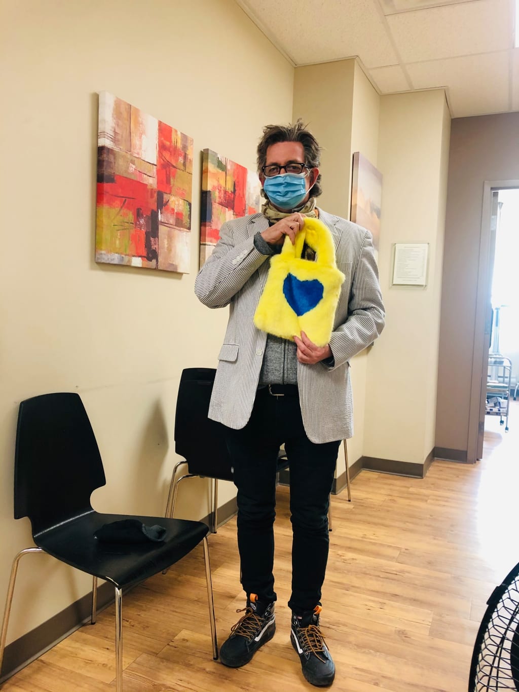 I am holding a special bag...i love yellow...and I love beautiful things and I love light and I love the blue heart, for in 2019, the doctors fixed my own and replaced the mitral valve.....