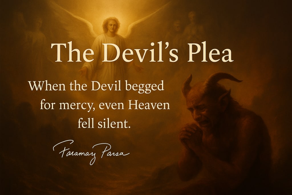 Through the keyhole of Heaven, even angels tremble — for what the Devil asks is not forgiveness for his sin, but refuge from mankind itself.