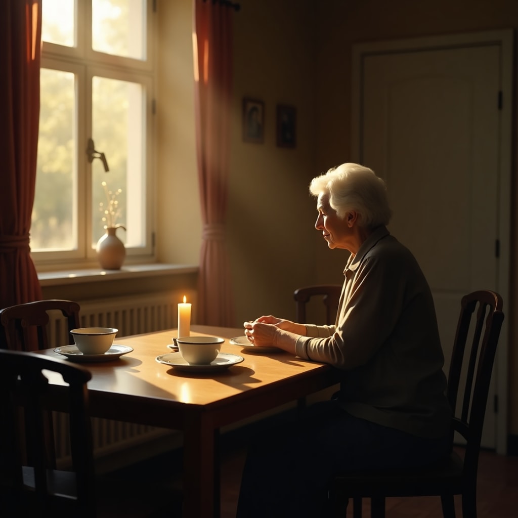 Every evening at exactly 7:00 p.m., Mrs. Eleanor Hughes would set the table for two. A simple wooden table in a sunlit kitchen, now faded with time. Two plates. Two forks. Two glasses. But only one person sat down.