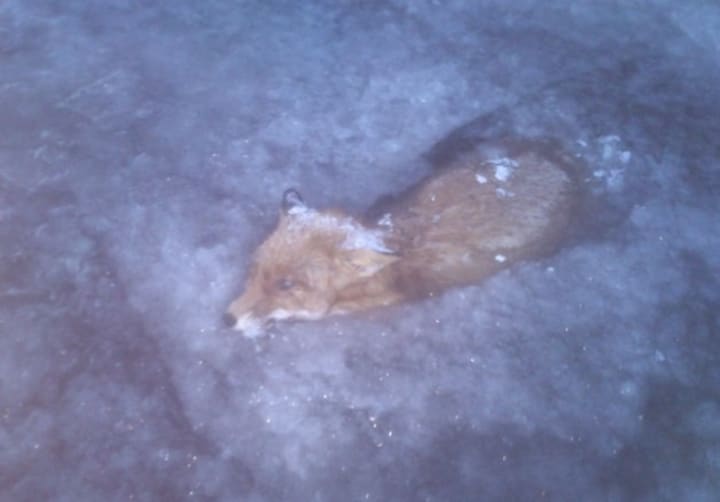 “It’s a fox” He looked at me, waging for a moment and then returned to poking the ice.