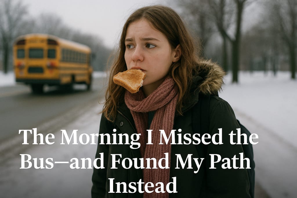 I was 17, late for school, and flying down the block in the middle of winter with half-frozen hair and a burnt piece of toast in my mouth. Classy. The yellow school bus came around the corner just as I was reaching the stop. I waved frantically, breath clouding in the air, but the driver didn't see. Perhaps he did, and just decided it was too late.