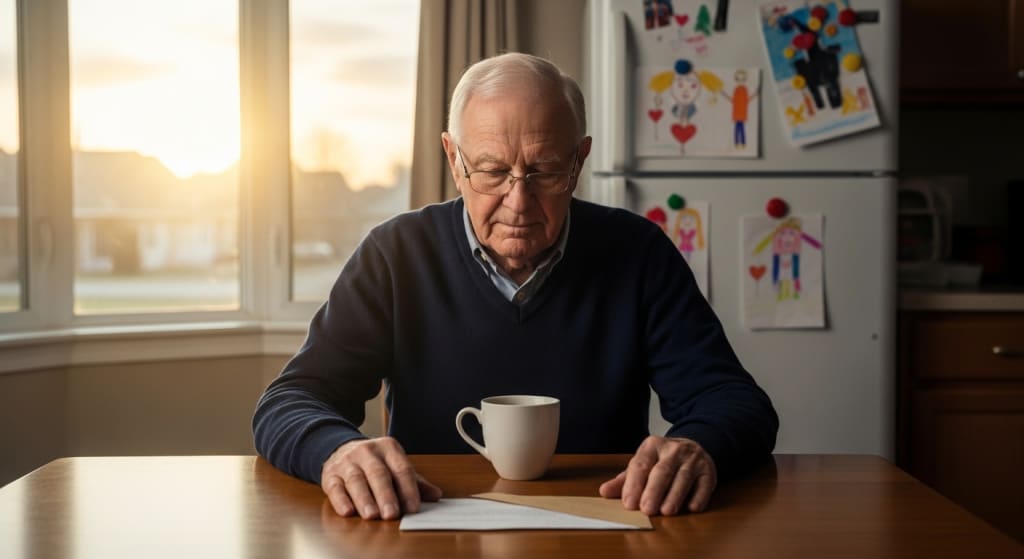 The elderly man at the kitchen table, the unopened letter before him—he could be a parent waiting to hear from a child. He could be a child who never spoke to his own parents and now sits with the weight of that silence. He could be anyone, carrying the unsaid, wondering if it is too late. The sun is rising outside. The coffee is cold. The letter is still sealed. The question is whether he will open it, or whether it will remain forever as it is: a possibility, a hope, a regret waiting to happen.