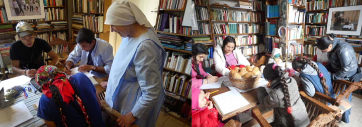 When you realized that many of the Roma, especially the women, are barely literate, you set up a school in the library to teach them. Roma men and women who aren’t in the same family can’t sit together so you had one class in the library for the women and children, and a second outside in the portico for the men. This must have required great patience which is another trait that I admire in you.