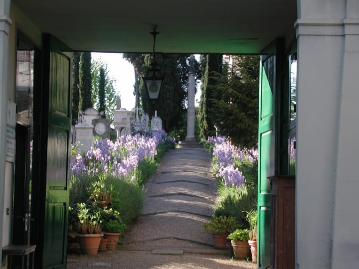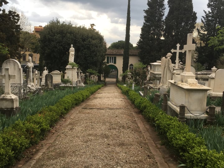 The English Cemetery was where foreigners who died in Florence in the 19th century were put to rest. The poet Elizabeth Barrett-Browning is buried here, along with others who were part of a celebrated Victorian expatriate literary community, known as the Golden Ring. This cypress-crowned hill on the edge of the old city is packed with authors, poets, artists, abolitionists and intellectuals who were well-known in their day, but have fallen into obscurity.
