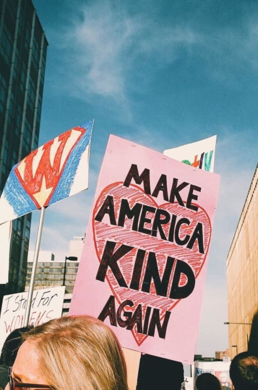 Now, “to make America kind again” I’m truly all for it!! Because honestly there is no reasonable sense to conduct a long term relationship with reality where bitterness and hatred and fears and inconsiderate actions are pressed to the fact of what is going on with our peoples and their reactions to the unkindness of our peoples lives that need to be held accountable for even just a moment longer to get out and heal the flaws examining the situation in what the world only knows as being evil and from not confronting the evil and trying to protect ourselves from it escalating and hurting us even more than what the daily society norms have had us in practice.