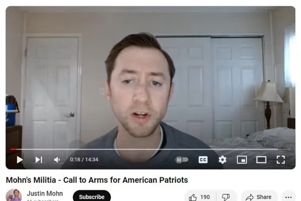 After ranting about the Biden administration and the "woke mob" in a long YouTube video, 32-year-old Justin Mohn showed off his father's head in a plastic bag.