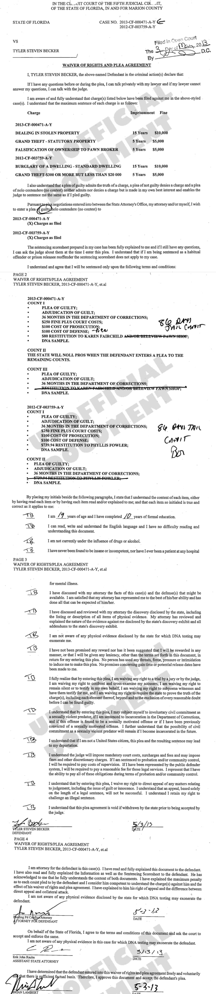 A criminal mischief charge he faced in February 2012 was dropped, but Becker committed retail petit theft that June. He had a notice to appear, but he didn’t, so he was arrested on a warrant in July and spent two days in jail. He pleaded guilty in September and was sentenced to six months of probation, but he violated that with his next arrest.
