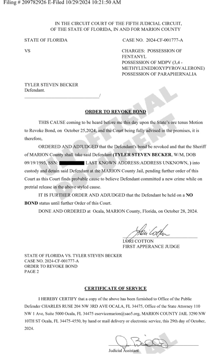 That caused the judge to revoke Becker’s bond, and he remains in jail.