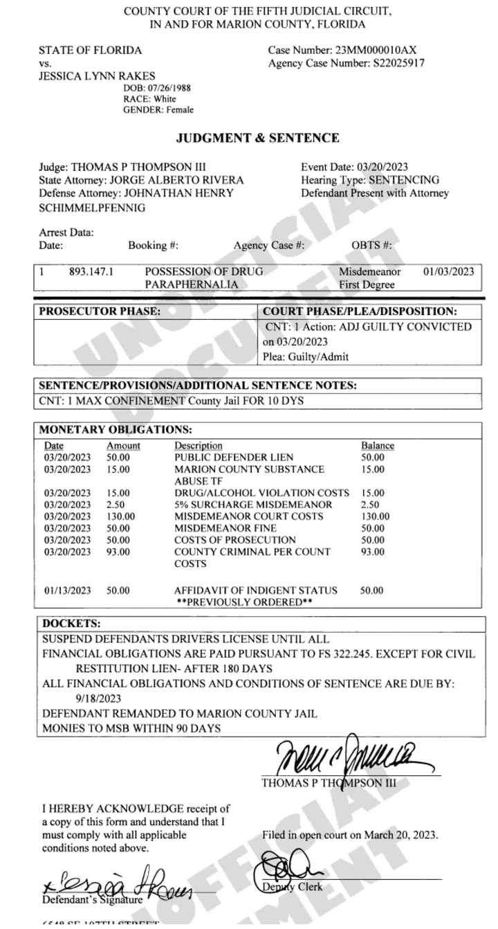 Rakes was charged with obstructing justice by tampering, two counts of smuggling contraband into detention, possession of fentanyl, possession of a controlled substance-methamphetamine, and possession of drug paraphernalia.