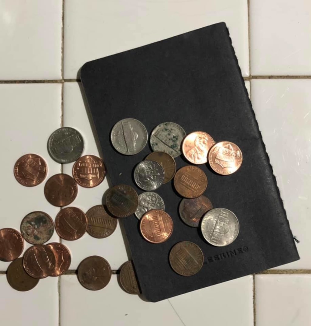 A Little Black Book and 20 Pennies, 4 Nickels and 2 Dimes